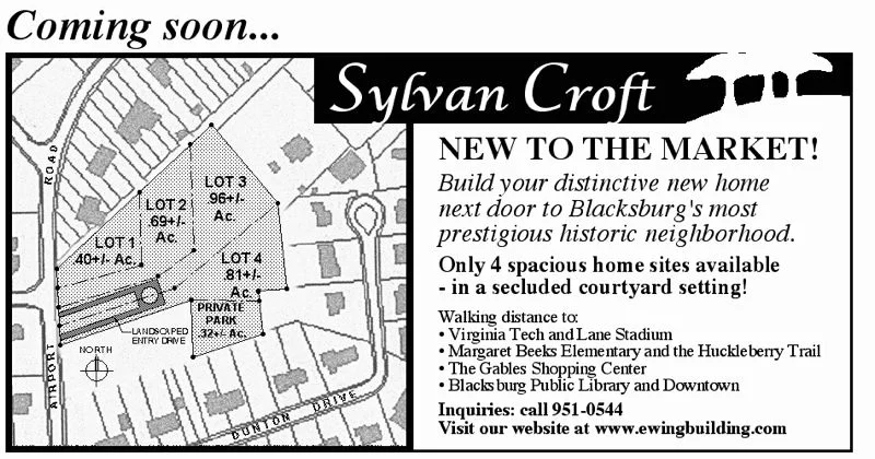 Many developers and builders go straight to a Civil Engineer when laying out a subdivision. One of Marc's favorite things to do is walk a site with a client to find just the right spot for the home, letting the site speak to them about where it belongs. This same sensitivity can be applied on a subdivision level. Skia's services can be value-added to the very necessary work of the engineer, as Marc approaches a site with an artistic eye and a sensitivity to the aesthetics and preservation of natural surroundings. The Sylvan Croft subdivision in downtown Blacksburg represents an example of such work.
